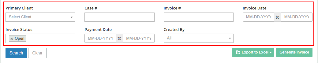 Select the criteria for the invoice(s) you are looking for, then click "Search" and the invoices that match the criteria will be listed.